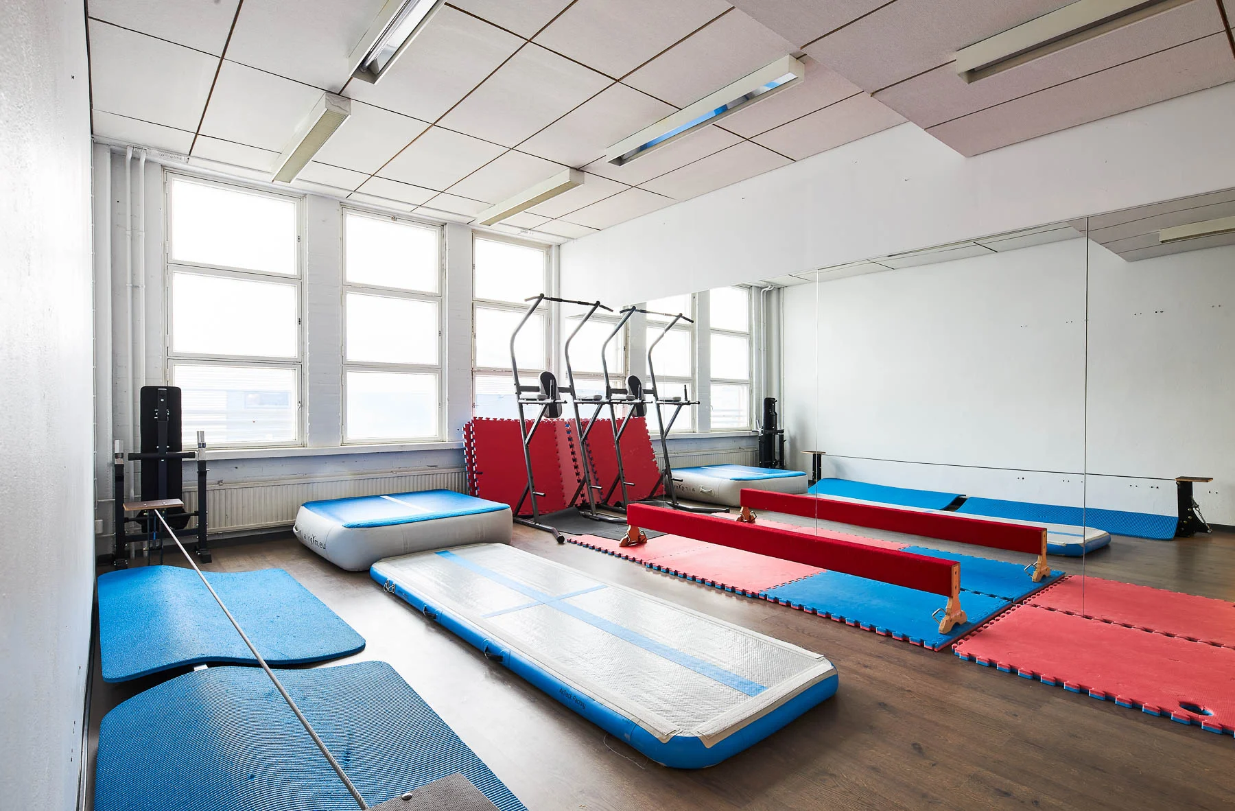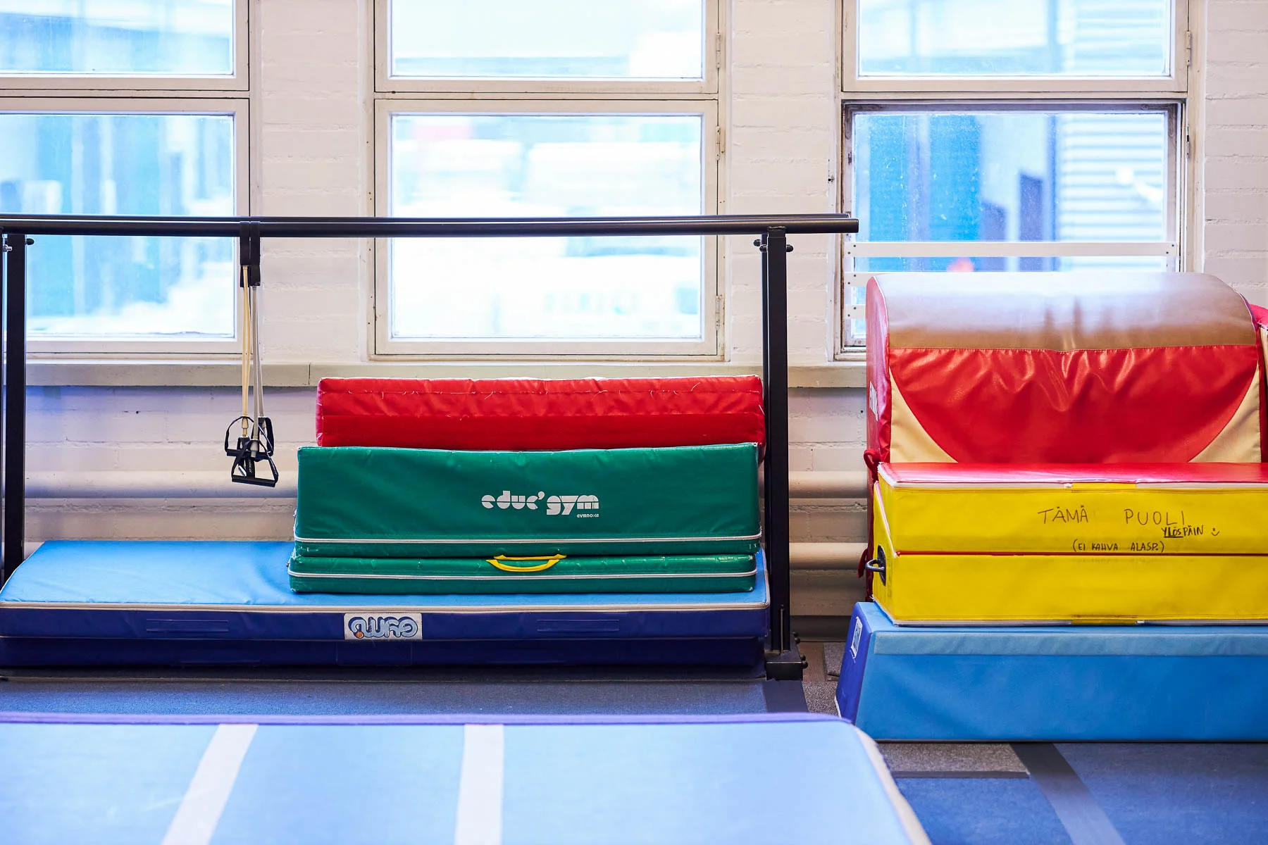Sirkusakrobatiaan omistettu harjoittelutila — Helsingin Suutarilassa.