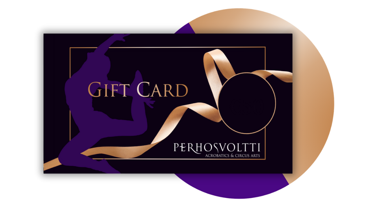 Give the gift of acrobatics! Perfect for birthdays or any special occasion. These gift cards can be used toward trial classes, private lessons, semester enrolment, or small group classes. Valid for 12 months from purchase. Gift cards sent via email within 24 hours.