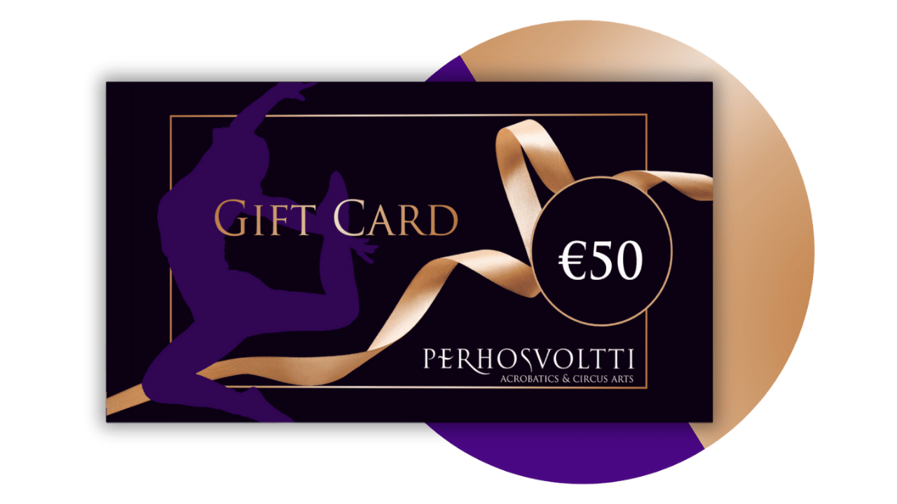 Give the gift of acrobatics! Perfect for birthdays or any special occasion. This €50 gift card can be used toward trial classes, private lessons, semester enrollment, or small group classes. Valid for 12 months from purchase. Gift cards sent via email within 24 hours.
